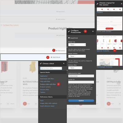 6. Über "Add DEHN21 single product slide" fügst Du einen neuen Produktteaser hinzu.