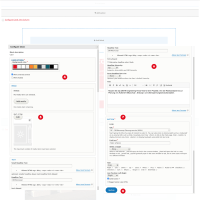4. Wähle ein Bild aus der Mediendatenbank oder füge ein neues über "Datei auswählen" hinzu (2560 x 1440 px). Wenn Text über dem Bild liegen soll, so füge diesen unter Headline Text ein und wähle vorab unter "Headline Hierarchy" "H2" aus.