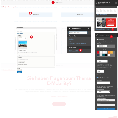 3. Füge der Section über "Add block" eine Komponente hinzu.