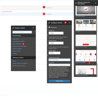 3. Wähle die Einstellungen für die Section aus und definiere das "Administrative label" für eine bessere Übersicht im Backend.