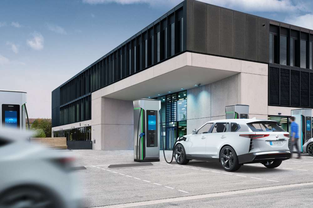 Seit 2021 liefert Siemens AG kompakte Gleichspannungs- Schnellladestationen für öffentliches Laden mit einer Leistung bis zu 300 kW. Die Basisladestation SICHARGE D lässt sich leicht um 2 DC-Ladepunkte erweitern, so dass bis zu 5 Fahrzeuge parallel und dynamisch geladen werden.