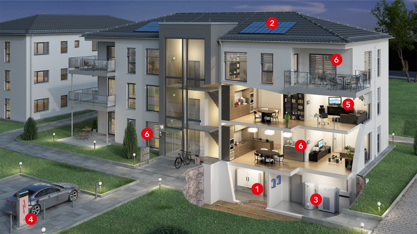 Da moderne Mehrfamilienhäuser zunehmend elektrischer werden, ist Überspannungsschutz besonders wichtig. Ein wirksames Überspannungsschutzkonzept schützt elektrische bzw. elektronische Systeme und Geräte vor Schäden in Folge von zu hohen Spannungen. Dabei wird die gefährliche Störenergie stufenweise auf ein unbedenkliches Niveau reduziert. So sind Photovoltaikanlage, die Ladeinfrastruktur für Elektroautos und das Energiemanagementsystem sicher geschützt.