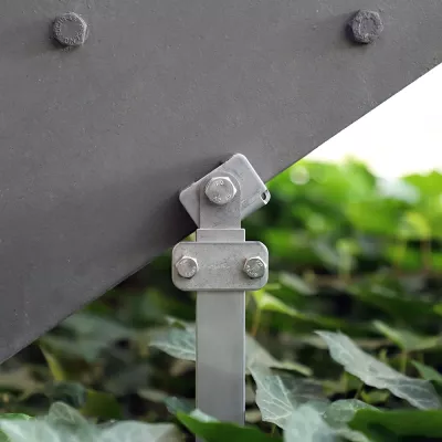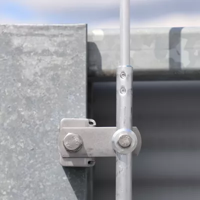 Mittels Zubehör können Fangstangen (Ø 16/10 mm) ohne Bohrung an Stahlträger montiert werden.