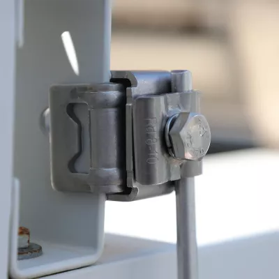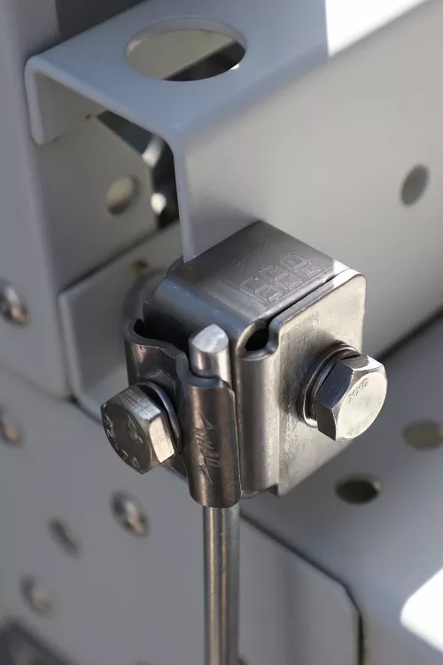 Der Klemmbereich von 3-52 mm ermöglicht eine einfache Einbindung verschiedensten Metallkonstruktionen als natürlicher Bestandteil des Blitzschutzsystems.