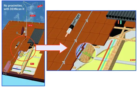 DEHNcon-H støtterør til HVI-leder light, trækning under tag