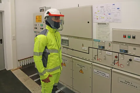 Lysbueafprøvede beskyttelsesskærme med høj lystransmission til sikkert arbejde i elektriske installationer. Certificeret i henhold til PPE-forordningen (EU) 2016/425 for markedsføring af personligt beskyttelsesudstyr. Beskyttelseshætte til fuld beskyttelse af ansigt, hoved og nakke. Elektrikerbeskyttelseshjelme til montering af beskyttelsesskærme og beskyttelseshætte.