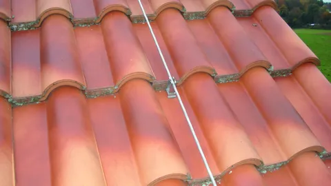 Die Fangleitungen auf Dächern aus Reet, Stroh oder Schilf müssen frei gespannt verlegt werden z. B. auf isolierenden Stützen. Auch im Bereich der Traufe sind bestimmte Abstände einzuhalten.