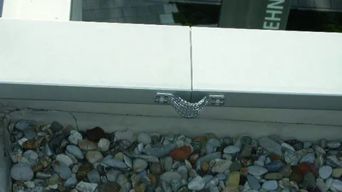 Nach DIN EN 62305-3 Bbl. 1 sind für den Anschluss bei Materialstärken ≥ 0,5 mm vier Nieten Ø5 mm oder bei Materialstärken ≥ 2 mm zwei Blechtreibschrauben Ø6,3 mm aus NIRO zu verwenden (beidseitig).