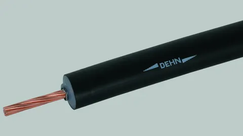 High-voltage-resistance insulated down conductors for maintaining the separation distance from conductive parts. For use up to an equivalent separation distance s ≤ 75 cm (in air) or s ≤ 150 cm (solid material).