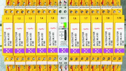 El portafolio de DEHNrecord provee productos para el mantenimiento preventivo y basado en el estado operativo de las diferentes gamas de descargadores con LifeCheck. Los dispositivos de vigilancia asociados están disponibles como unidades estacionarias o como probadores manuales flexibles.