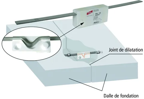 Bornes de mise à la terre et pinces de raccordement fixes pour l'établissement de liaisons équipotentielles. Electrodes de terre et douilles murales pour entrer en toute sécurité des conducteurs dans un bâtiment. Colliers d'armature pour relier l'armature au système de terminaison de terre de telle sorte qu'il peut porter des courants de foudre.