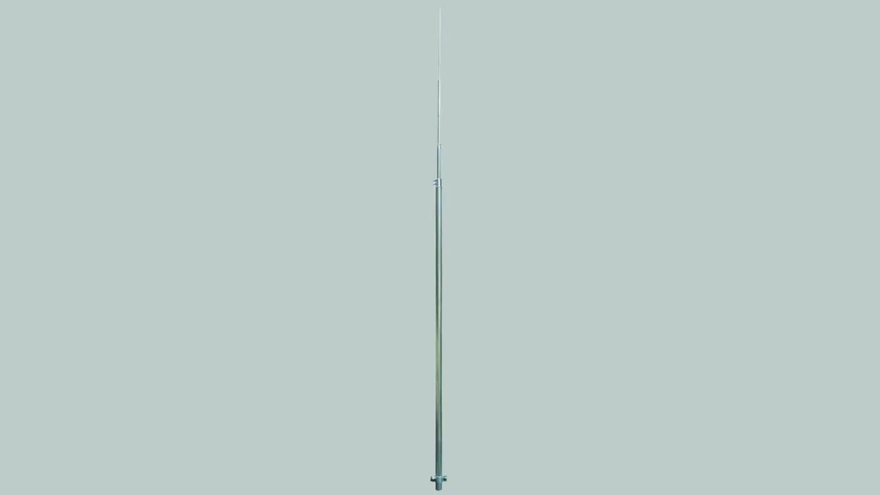 Die maximale freie Länge bezieht sich auf die Spitze der Fangstange bis zum oberen Halter (Befestigungspunkt).