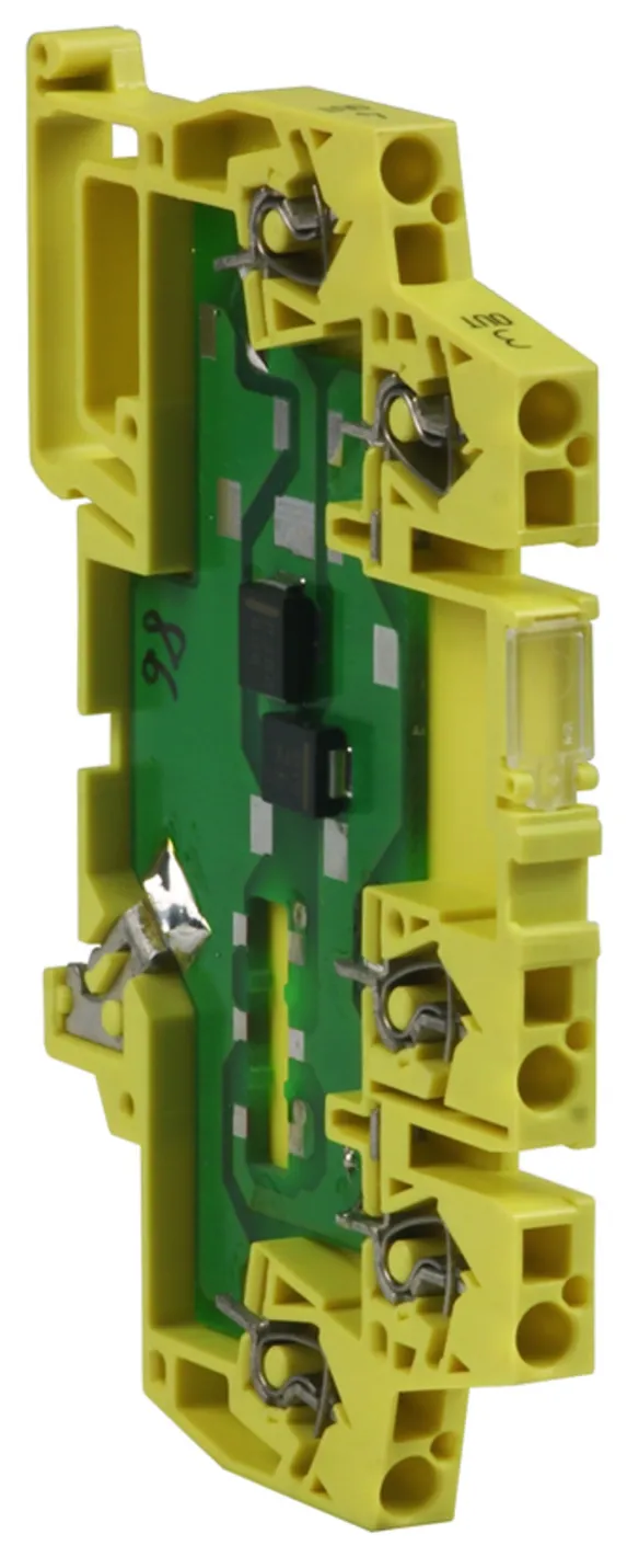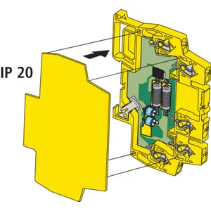 Überspannungsschutz mit leistungsfähigen Dioden zwischen den Signaladern für Ausgangs-Digitalbaugruppen von SIEMENS-SPS S7-300 (laborgeprüft). Mit der Klemme kann ein erhöhter EMV-Schutz realisiert werden. Keine Verbindung zu PG.