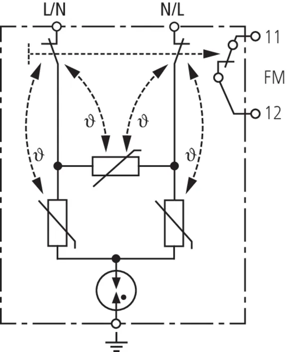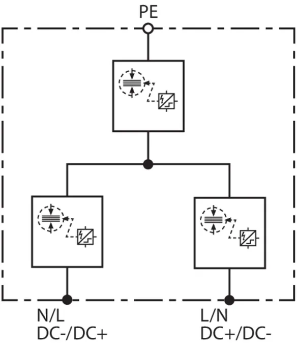 | – Nennableitstoßstrom (8/20 µs) bei ≤70 °C [L-N/N-PE / L-PE] (In ) | 5,5 kA +-5 times, interval 1min. (each time), interval 25 min. (each group) |