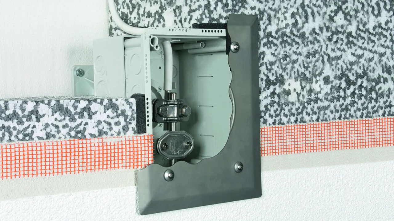 Mit dem Trennstellenkasten können Montagehöhen von 90-140 mm stufenlos eingestellt werden. Der zusätzliche Abstandshalter ermöglicht den Einsatz bei Dämmstoffstärken bis 320 mm.