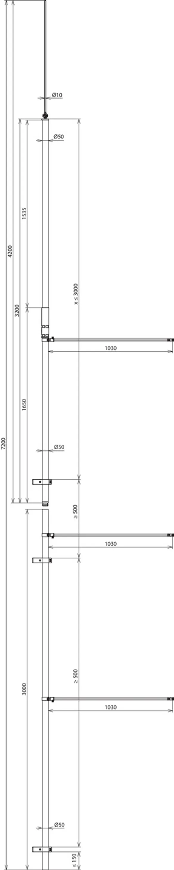 | Length of supporting tube | 3200 mm |