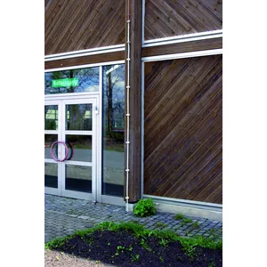 The hazardous area for persons outside of a building is defined as an area of 3 m around the down conductor and from ground level up to a height of approx. 3 m.