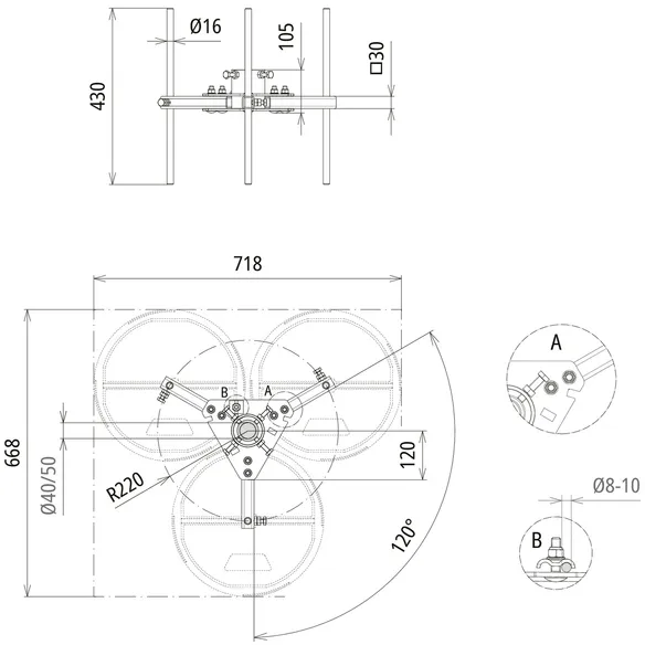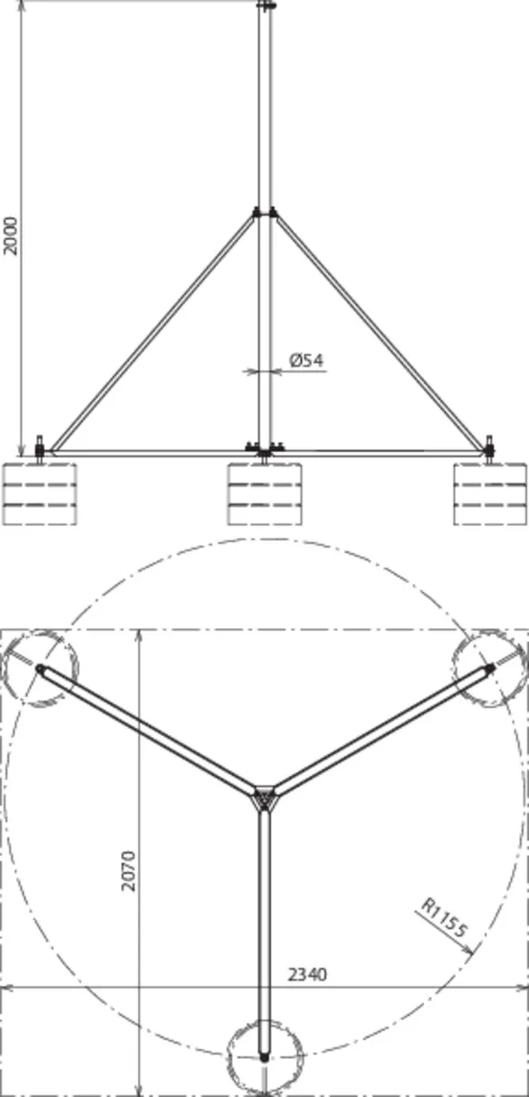 For air-termination rods D40, D50 and D60, DEHNiso Combi supporting tubes with air-termination rod / tip or HVI Conductor installed in / on the supporting tube.