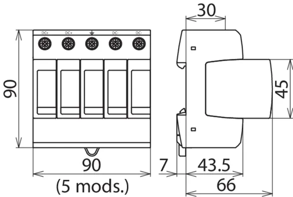 with three-step d.c. switching device, width: 5 modules