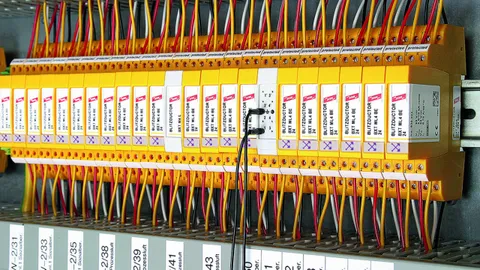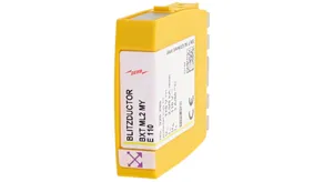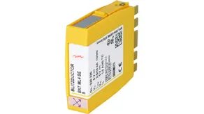 Space-saving surge arrester module with RFID LifeCheck for protecting two lines of stranded signal interfaces up to 250 V a.c. If LifeCheck detects thermal or electrical overload, the arrester has to be replaced. This status is indicated contactlessly by the DEHNrecord LC / SCM / MCM reader.