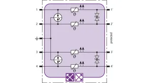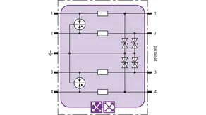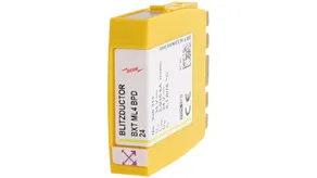 Space-saving surge arrester module with RFID LifeCheck for protecting two pairs of stranded signal interfaces. If LifeCheck detects thermal or electrical overload, the arrester has to be replaced. This status is indicated contactlessly by the DEHNrecord LC / SCM / MCM reader.