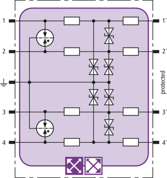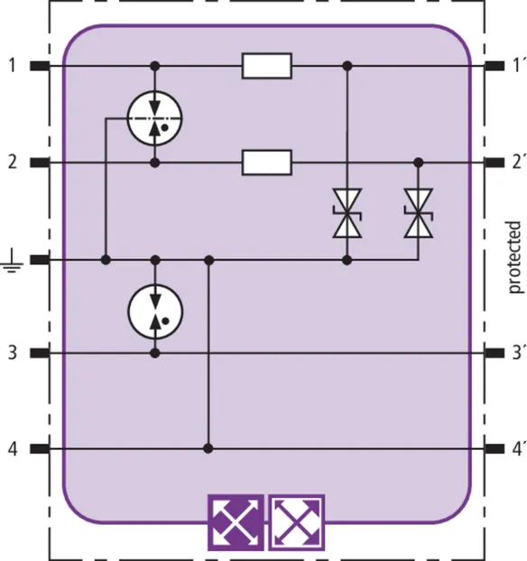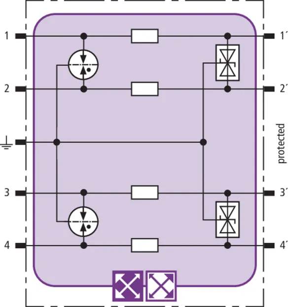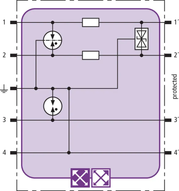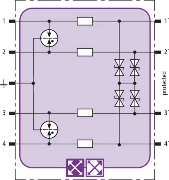 All protection elements are integrated in the plug-in module and are monitored by means of LifeCheck.