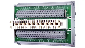 DIN rail mounted routing module with LSA disconnection block of the 2/10 series as well as spring-loaded terminals for variable wire connection. DPL and DEHNrapid LSA surge arresters can be plugged into the routing module.