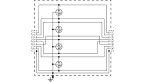 Universal, space-saving lightning current arrester of 19 mm in width and RJ45 connection system for lightning equipotential bonding. Protection of applications in structured cabling according to class S to 100 MHz; e.g. industrial Ethernet, data distributors, digital camera systems, Power over Ethernet (IEEE 802.3 compliant to 4PPoE) and Ethernet-based interfaces in general. Protection of all pairs through powerful gas discharge tubes. Fully shielded adapter design with RJ45 sockets for DIN rail mounting. With additional screw connection on the enclosure for an optional earth connection.