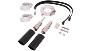 Connection kit for HVI power Conductor for installation on HVI power supporting tubes GRP / Al consisting of connection elements, threaded pins, connection part, heat-shrinkable sleeves, cable ties and fixing ring with a slotted conductor holder (Ø27 mm).
