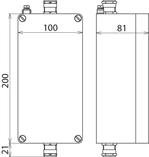 Dimensions (W x H x D) 100 x 200 x 81 mm