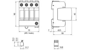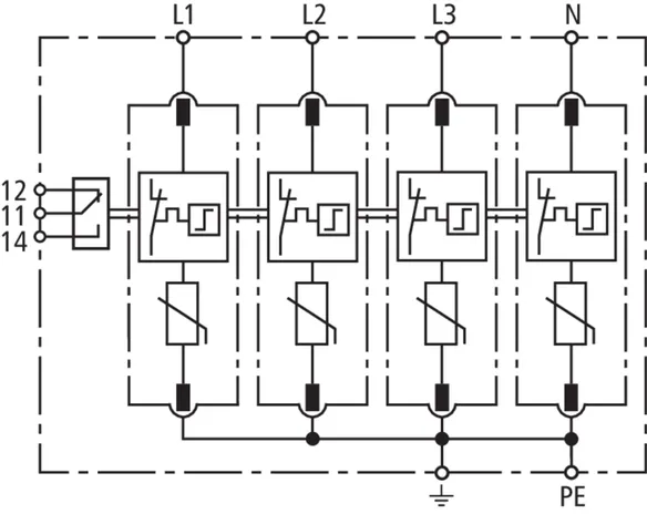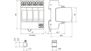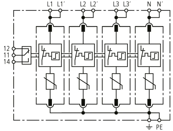 Modular surge arrester for TT and TN-S systems (3+1 configuration); with floating remote signalling contact.