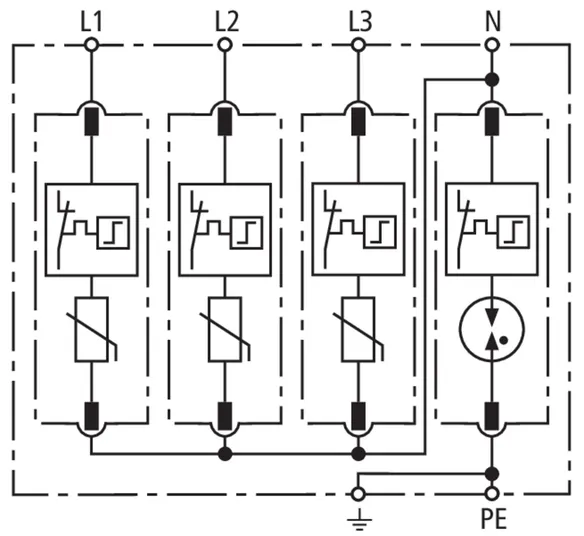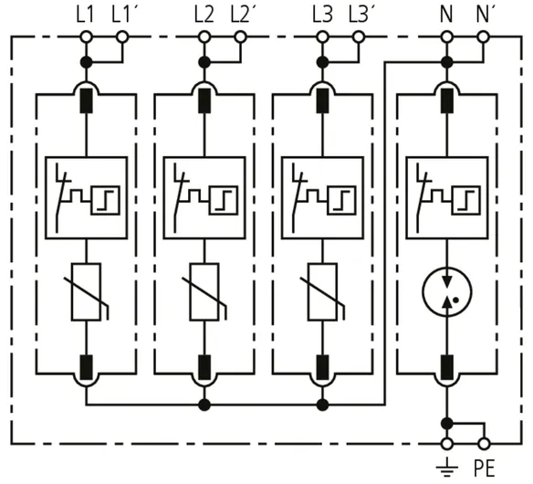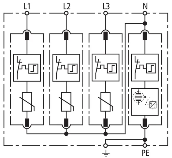 • High discharge capacity due to heavy-duty zinc oxide varistors / spark gaps