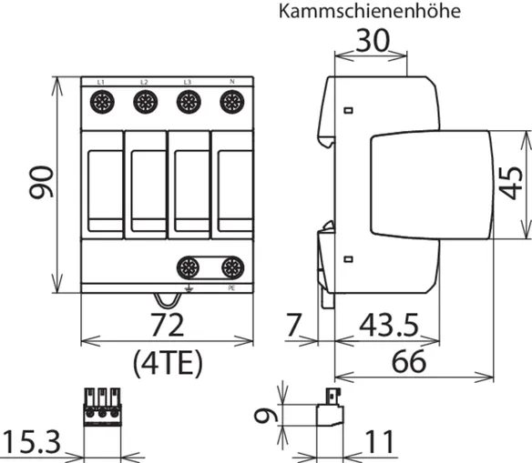 400/690 V TN-C systems, Width: 3 modules