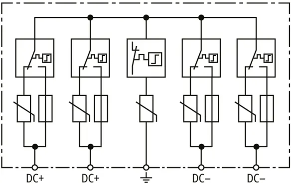 Nominal discharge current (8/20 µs) [(DC+/DC-) --> PE] (In ) 20 kA