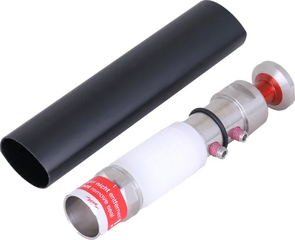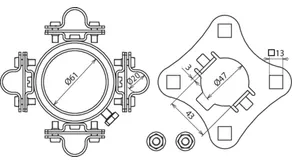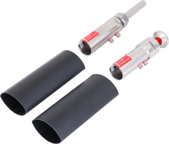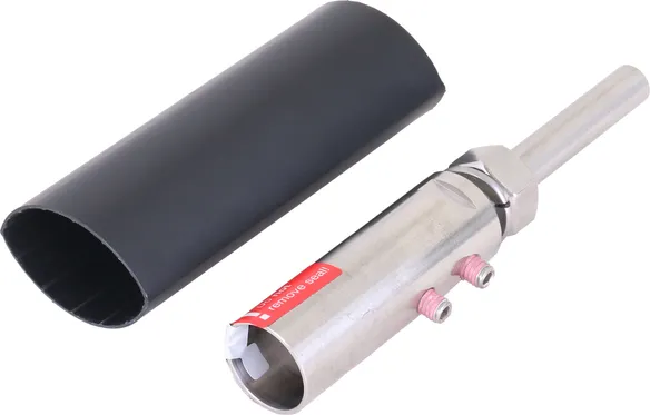 Fixing kit for installation of the HVI long Conductor on HVI long supporting tubes, consisting of a connection plate (4x, including two self-locking nuts with serrated bearings) and a fixing ring with four slotted conductor holders (Ø20 mm) for the sealing end (including two cable ties with plastic holder halves).