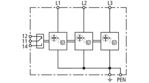 | Lightning impulse current (10/350 µs) [L1+L2+L3-PEN] (Itotal ) | 37.5 kA |