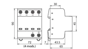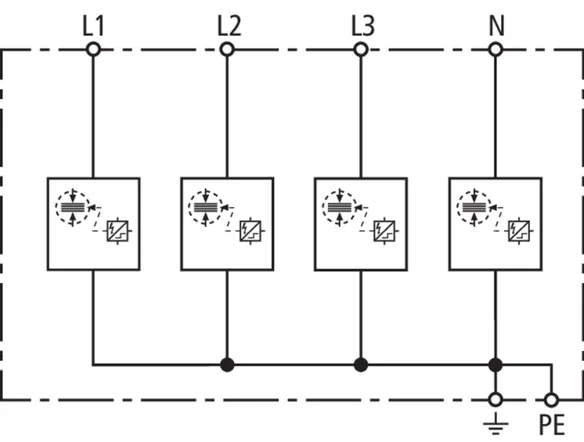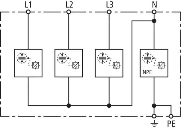 | Lightning impulse current (10/350 µs) [L1+L2+L3+N-PE] (Itotal ) | 30 kA |
