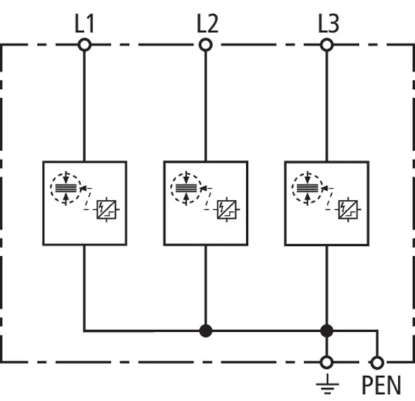 | Lightning impulse current (10/350 µs) [L1+L2+L3-PEN] (Itotal ) | 22.5 kA |