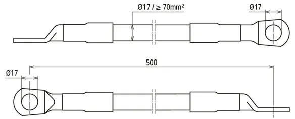 The earthing bridges are designed for earthing, return circuits and equipotential bonding in railway line applications. This version establishes a non-visible connection within the concrete due to the copper-plated steel lugs that are pressed onto the copper cable being welded to the earthing reinforcement. The flexibility of the cable simplifies installation in the reinforcement for the user. The special FLEX versions are especially well suited for installation situations where space is critical – ultra flexible fine stranded copper cables are used here. These earthing bridges also have the technical approval of DB Netz AG and can be used there without hesitation in planning.