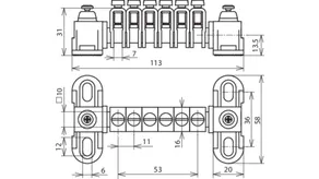 Equipotential bonding bar with miniature terminal block system Equipotential bonding bar with miniature terminal block system For main equipotential bonding according to DIN VDE 0100 Part 410/540 in small-sized installations
