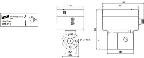 Quenching device outputs Optical fibre cable (at least 43 mA) (2x TX)