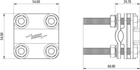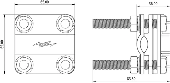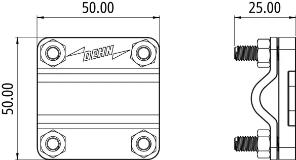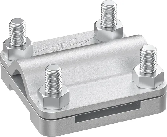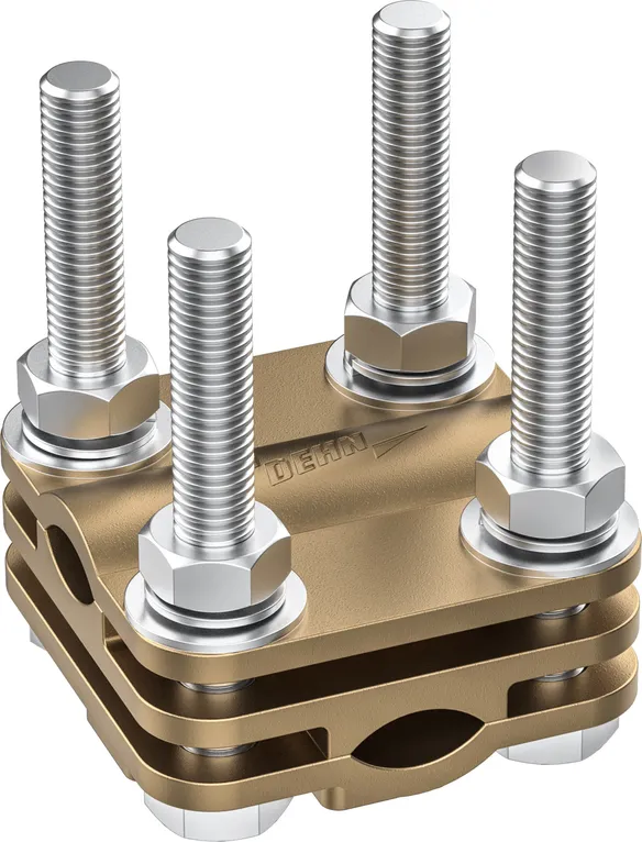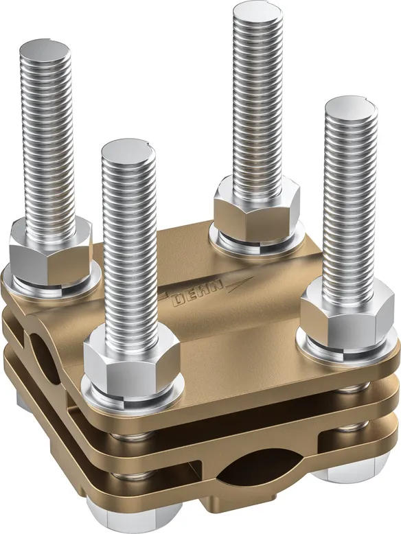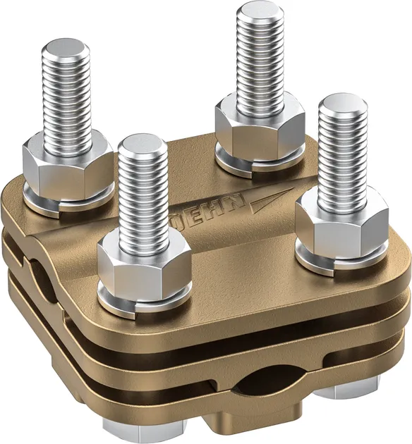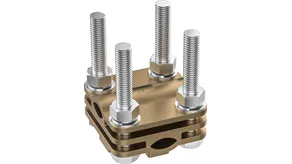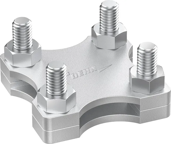 Square Conductor Clamps for interconnecting various sizes of flat, round and stranded conductors in parallel, cross, and T connection arrangements to form a continuous network. Equipped with a countersunk hole for fixing the clamp to structural surfaces. The Clamps have a high resistance to corrosion and show high mechanical strength to ensure a lasting connection.