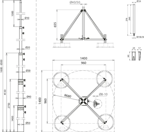 | Termination mast (Ø length) | 40/30/20-4200 mm |