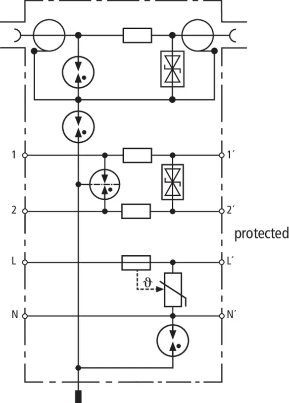 | D1 Lightning impulse current (10/350 µs) per line (Iimp ) | 2.5 kA |