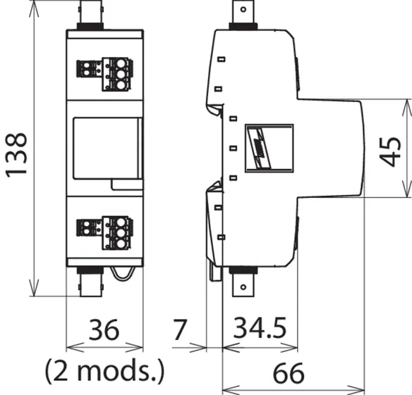 - Earthing / equipotential bonding via DIN rail