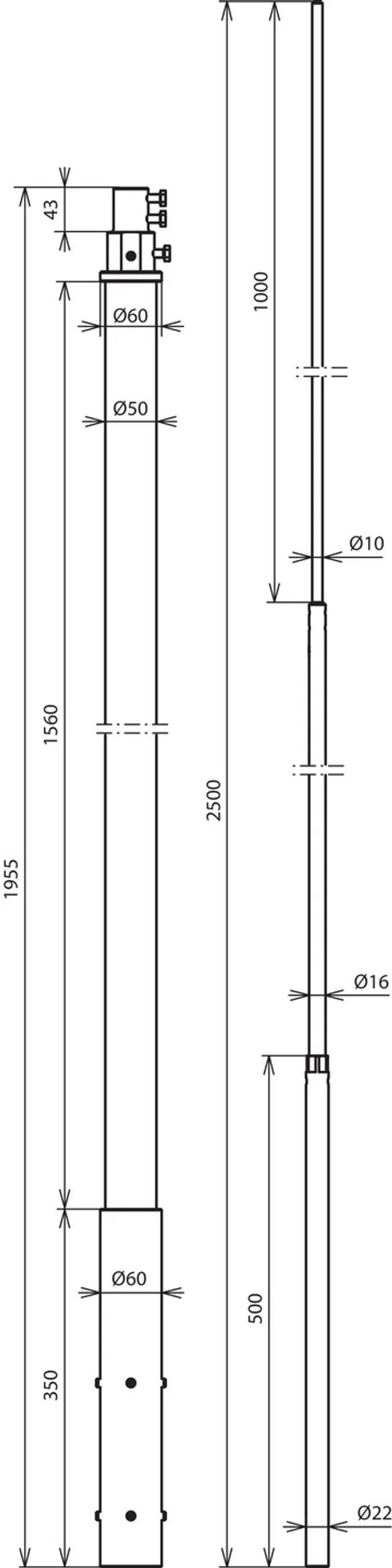 Supporting tube for HVI Conductor for on-site assembly, air-termination rod, Al, Ø22 / 16 / 10 mm.