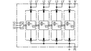 | Lightning impulse current (10/350 µs) [L1+L2+L3-PEN] (Itotal ) | 75 kA |