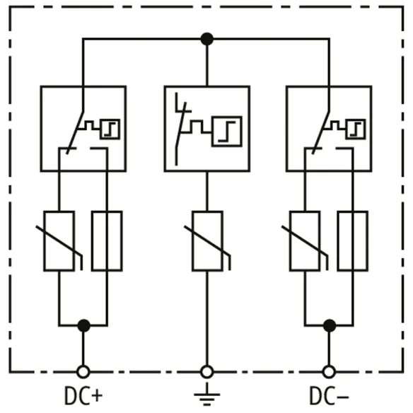 Max. discharge current (8/20 µs) [(DC+/DC-) --> PE] (Imax ) 25 kA
