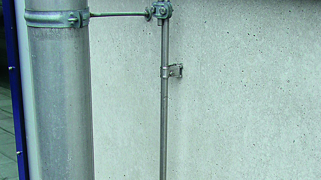Rod holder with claw, StSt Rod holder with claw For wall mounting with M6 clamping screw, for air-termination rods, earth entry rods or round wires with plastic sheath, fixed conductor routing